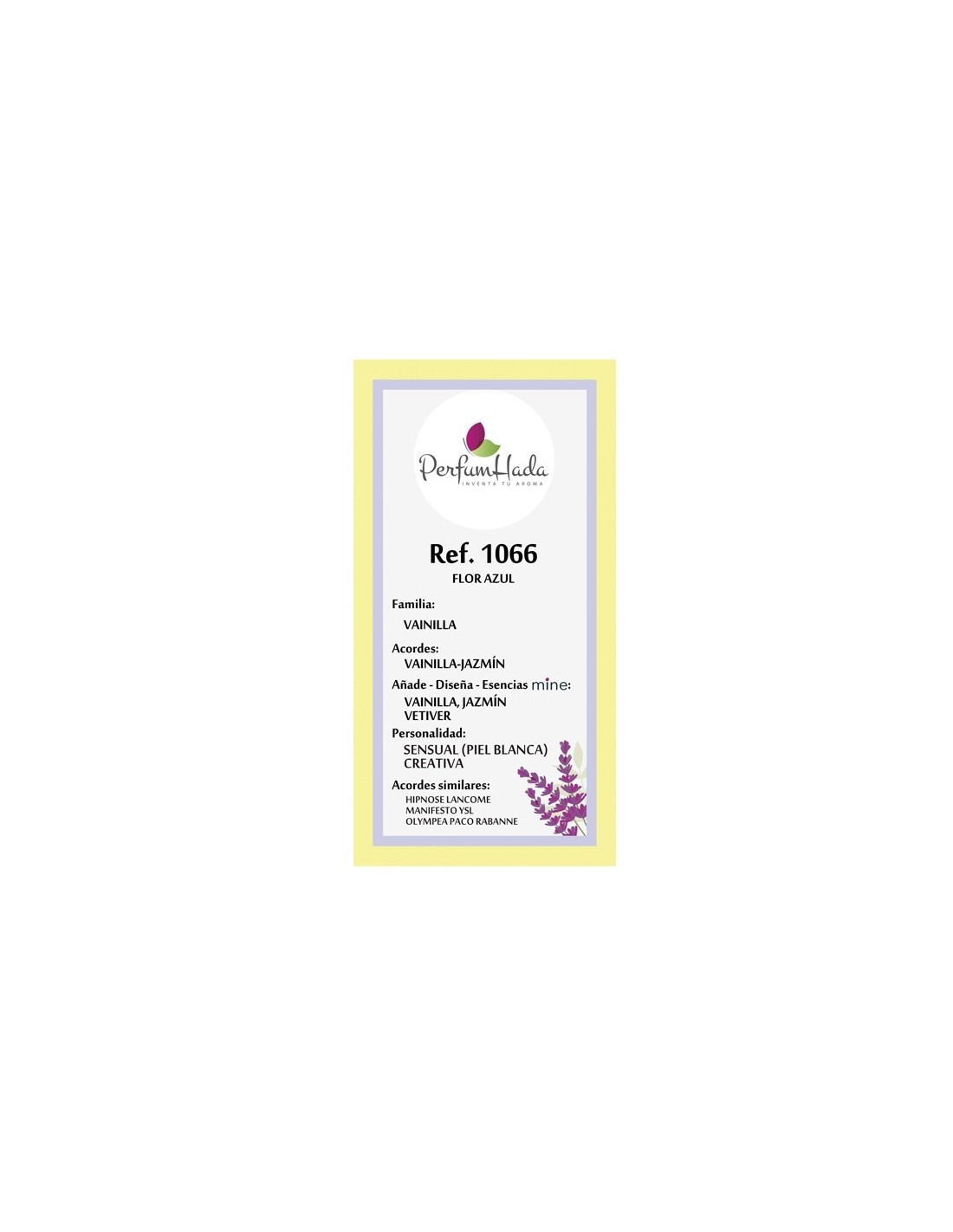 Puedes también crearte toda tu línea perfumada (gel de baño, crema corporal, aceite, jabón…) de este mismo aroma añadiendo gotas del concentrado puro de este perfume 1066.